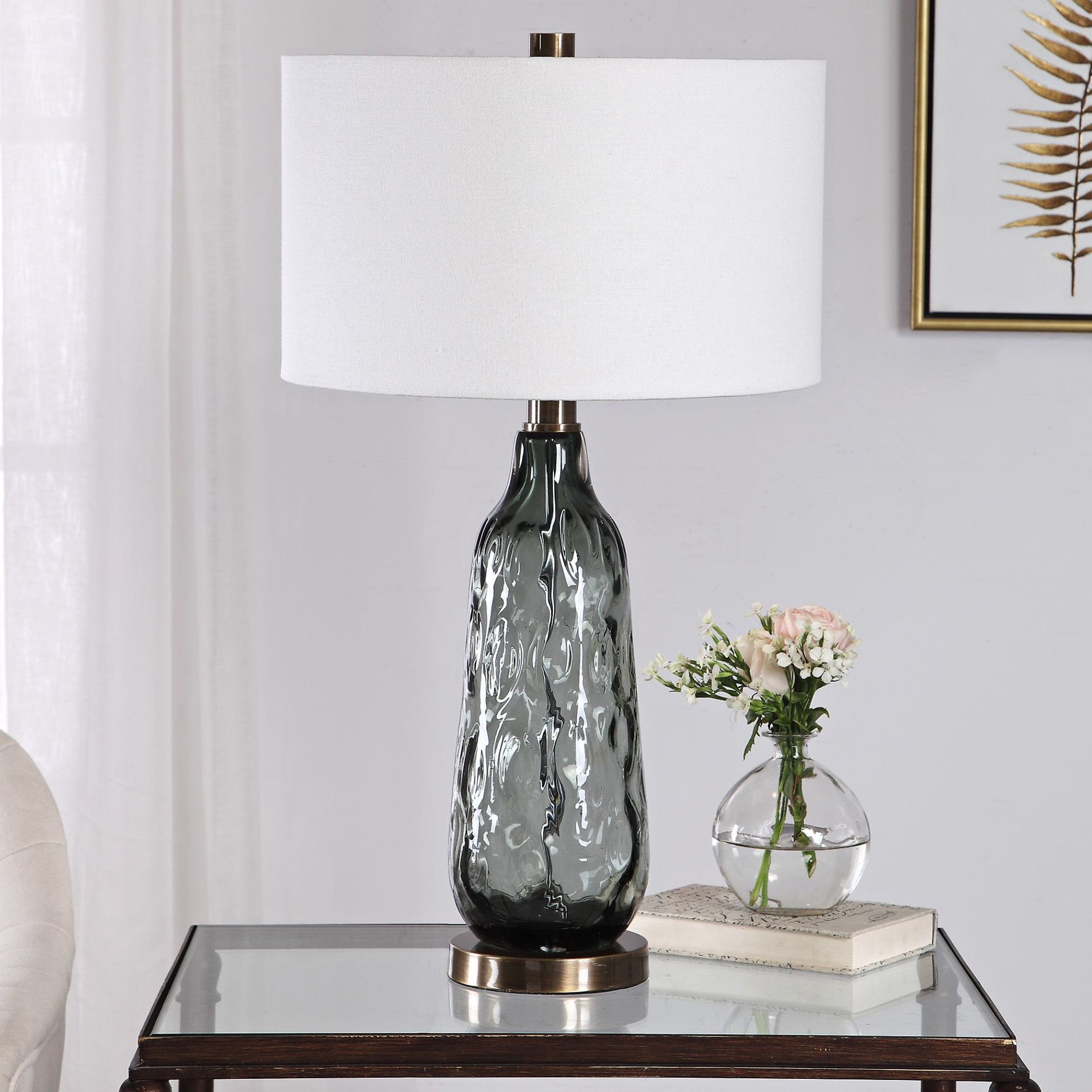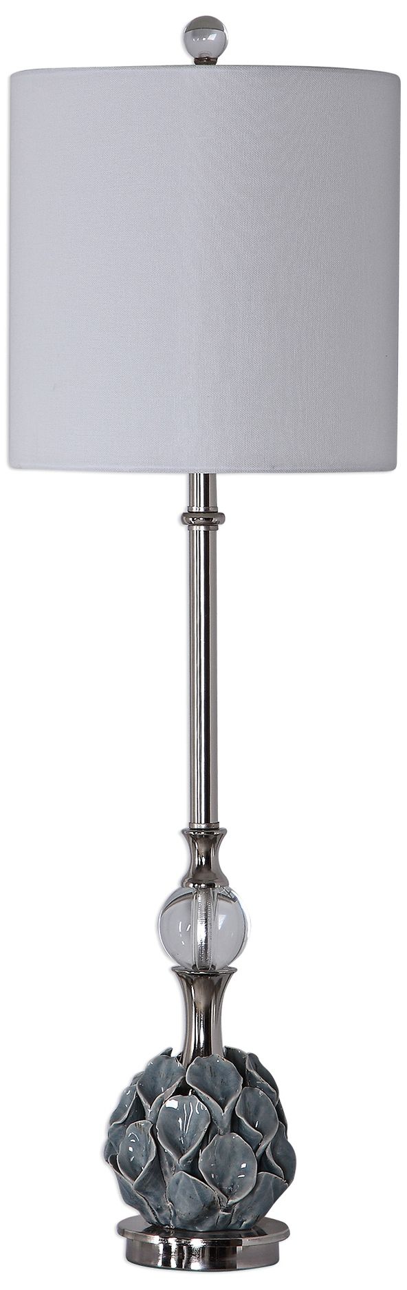 Graceful and curvaceous, this table lamp is sure to illuminate any room with style. A touch of design 15 cement table lamp, concrete base with smoked glass shade. Barnes and ivy traditional table lamp porcelain blue and white bird and branch jar white bell shade for living room family bedroom. Free shipping* more like this sullivan charcoal ceramic table lamp with gray fabric shade $ 181.59 sale save $ 45.00. Textured ceramic finished in a pale blue gray glaze accented with plated coffee bronze details.